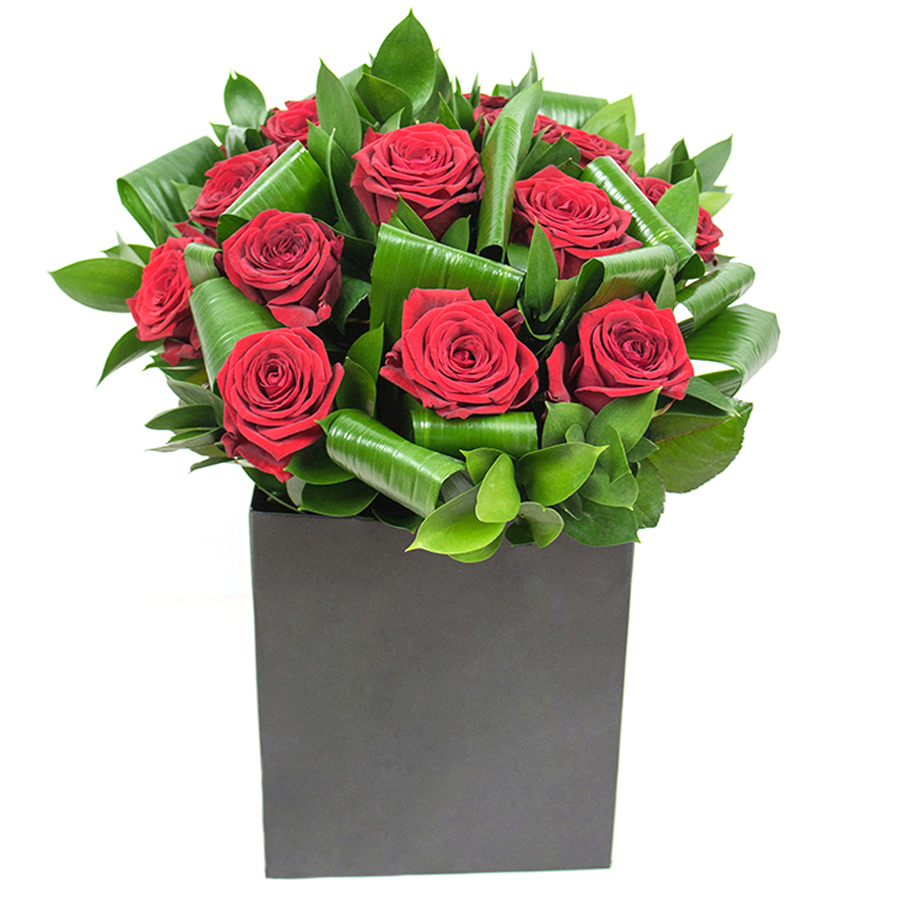 Infinite Beauty is a luxurious hand-crafted arrangement of rich red roses, sculptural aspidistra leaves and glossy ruscus, designed by Florist Harold Wood for a truly elegant gift. This timeless red rose display adds instant style and romance to any home, making it perfect for anniversaries, birthdays or a special 'just because' surprise.